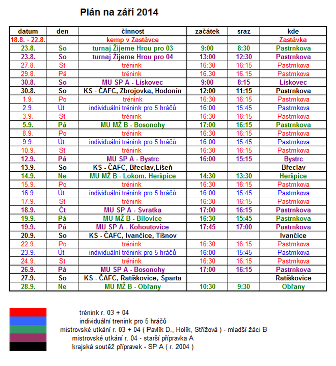 Kompletní plán ke stažení najdete zde: plán na září 2014 ČAFC