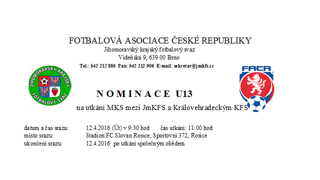 Nominace U14 a U13 na utkání MKS mezi JmKFS a Královehradeckým KFS